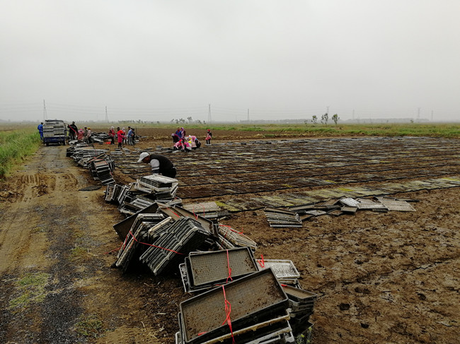 五月是水稻育秧落谷的黃金周期,大新農(nóng)場搶抓農(nóng)時迅速行動,育秧工作全面鋪開,田頭播地龍和暗化育秧同時進(jìn)行。5月4日,一分場四隊(duì)率先暗化秧擺盤,條田工自發(fā)組織“運(yùn)秧”車隊(duì),將大棚暗化秧盤運(yùn)至田頭進(jìn)行擺盤。截止目前,自營農(nóng)田育秧已播156700盤。(大新農(nóng)場)