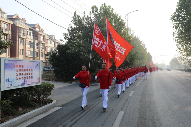 10月20日清晨,米業(yè)營銷公司聯(lián)合海州區(qū)微馬隊(duì)共同開展健步走活動(dòng),吸引了共三百余名健身愛好者參與其中。本次活動(dòng)旨在進(jìn)一步宣傳提高“鹽田玉”品牌的知名度,讓廣大市民在積極運(yùn)動(dòng)的過程中認(rèn)識(shí)“鹽田玉”、了解“鹽田玉”,拓寬“鹽田玉”宣傳渠道,提倡積極健康的生活方式,倡導(dǎo)廣大市民吃優(yōu)質(zhì)大米,過健康生活。本次健步走從海州區(qū)石棚山景區(qū)廣場出發(fā),內(nèi)環(huán)朐陽門、海州古城、秦東門大街返回,全程3.6公里。?(顧?益)