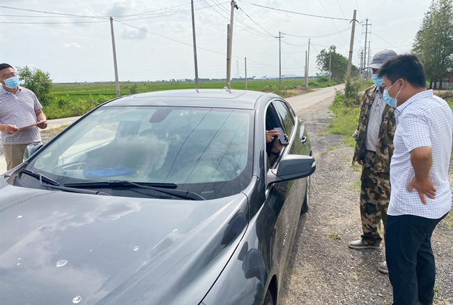 ? ? ? ?“請(qǐng)問你們是從哪里來(lái)?請(qǐng)戴好口罩,出示行程碼、健康碼?!贝笮罗r(nóng)場(chǎng)黨支部黨員與部分職工一道,堅(jiān)決當(dāng)好疫情防控的“守門員”,在對(duì)外來(lái)車輛登記進(jìn)入人員信息,檢查健康碼、行程碼,開展疫情防護(hù)知識(shí)宣傳。