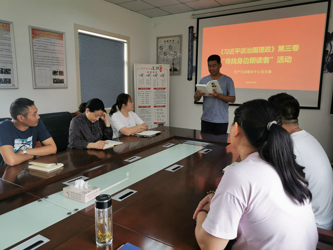 近期,生產(chǎn)生活服務(wù)中心黨支部組織黨員同志深入學(xué)習(xí)《習(xí)近平談治國理政》第三卷內(nèi)容,黨員們紛紛上臺(tái)朗讀自己喜愛的章節(jié),在學(xué)習(xí)中聯(lián)系工作理解思想理論,進(jìn)一步加強(qiáng)對習(xí)近平新時(shí)代中國特色社會(huì)主義思想的認(rèn)識(shí),聚焦自身實(shí)際深入學(xué),深刻感悟我將無我的情懷和自我革新的意識(shí),切實(shí)用習(xí)近平新時(shí)代中國特色社會(huì)主義思想武裝頭腦、指導(dǎo)實(shí)踐、推動(dòng)工作。(牛 瑩)