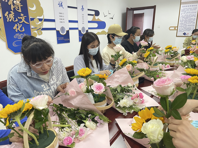 接下來(lái),女工委組織了插花活動(dòng),特邀插花老師現(xiàn)場(chǎng)講授插花知識(shí)及技法,借用花木來(lái)抒發(fā)女職工以花感人,以花育人,意在培養(yǎng)女職工善于表達(dá)對(duì)母親的愛(ài)及祝福。在花藝師的悉心指導(dǎo)下,女職工們用自己靈巧的雙手,盡情發(fā)揮創(chuàng)造力,為母親制作一個(gè)美麗、飽含感恩之情的花籃。