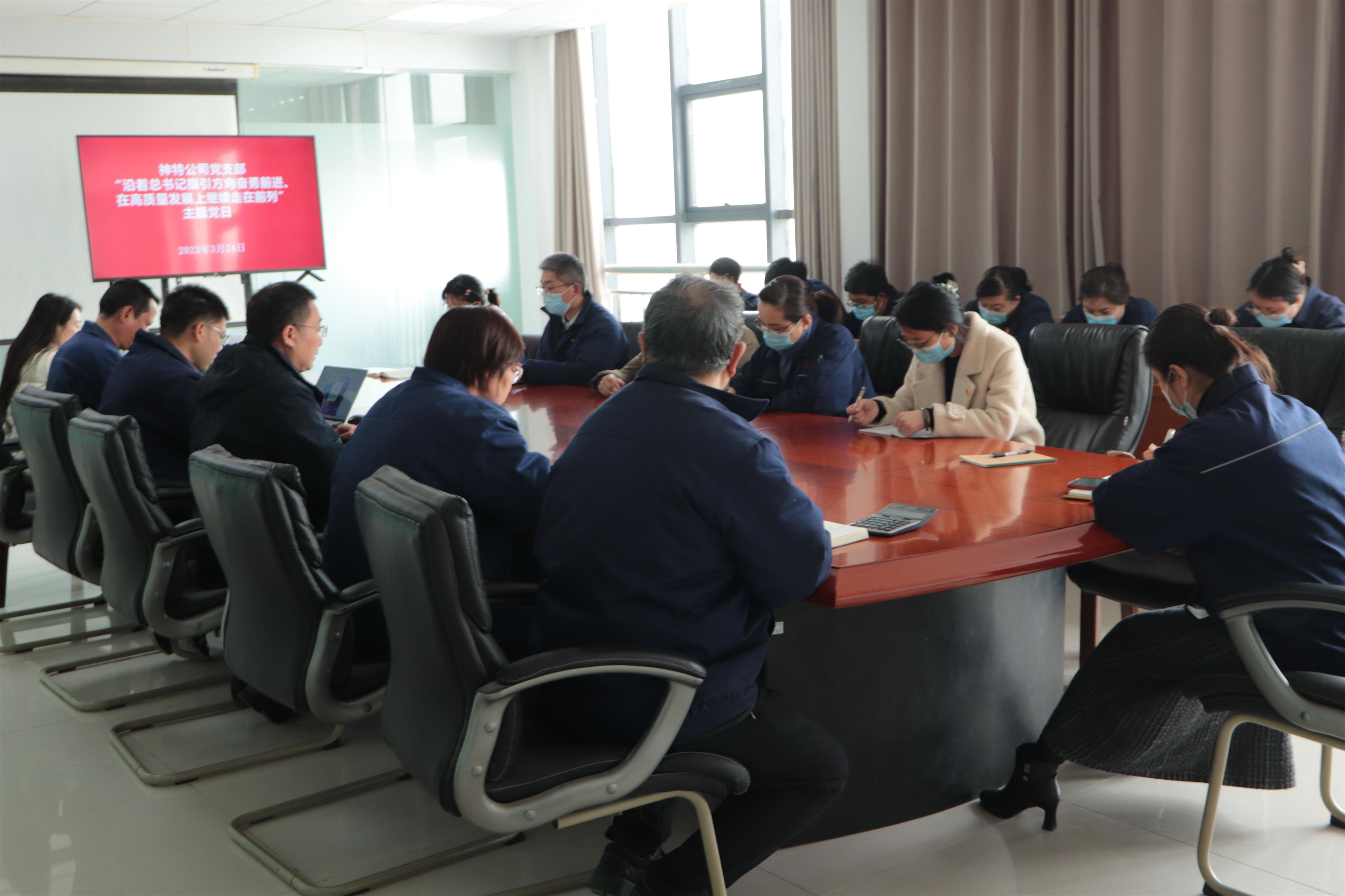 主題活動(dòng)上,黨支部副書記王爽芳領(lǐng)學(xué)習(xí)近平總書記在參加江蘇代表團(tuán)審議時(shí)的重要講話,黨群工作部部長(zhǎng)王秋業(yè)領(lǐng)學(xué)習(xí)近平在學(xué)習(xí)貫徹二十大精神研討班上的重要講話,引導(dǎo)黨員統(tǒng)一思想認(rèn)識(shí),認(rèn)清形勢(shì),奮力實(shí)干擔(dān)當(dāng)。隨后,觀看紀(jì)錄片《領(lǐng)航》,帶領(lǐng)黨員干部領(lǐng)略習(xí)近平新時(shí)代中國(guó)特色社會(huì)主義思想在新時(shí)代偉大實(shí)踐中彰顯出的強(qiáng)大真理力量。