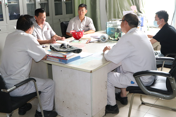 (圖為8月12日下午,部分黨員聯(lián)系結(jié)對班組)