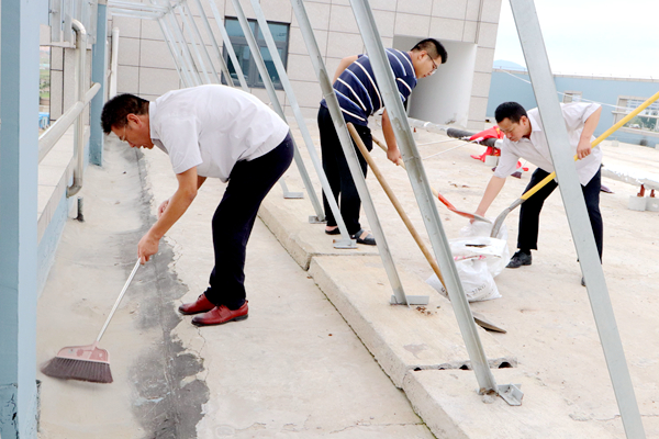 為凈化、美化公司辦公樓樓頂環(huán)境,消除積水隱患,8月26日上午,公司組織黨員、團(tuán)員青年志愿者開(kāi)展了專項(xiàng)清理整治行動(dòng)。志愿者不畏艱辛,對(duì)樓頂進(jìn)行了細(xì)致清掃,認(rèn)真疏通排水口,力爭(zhēng)陰雨天氣不再出現(xiàn)積水現(xiàn)象。(神特宣)