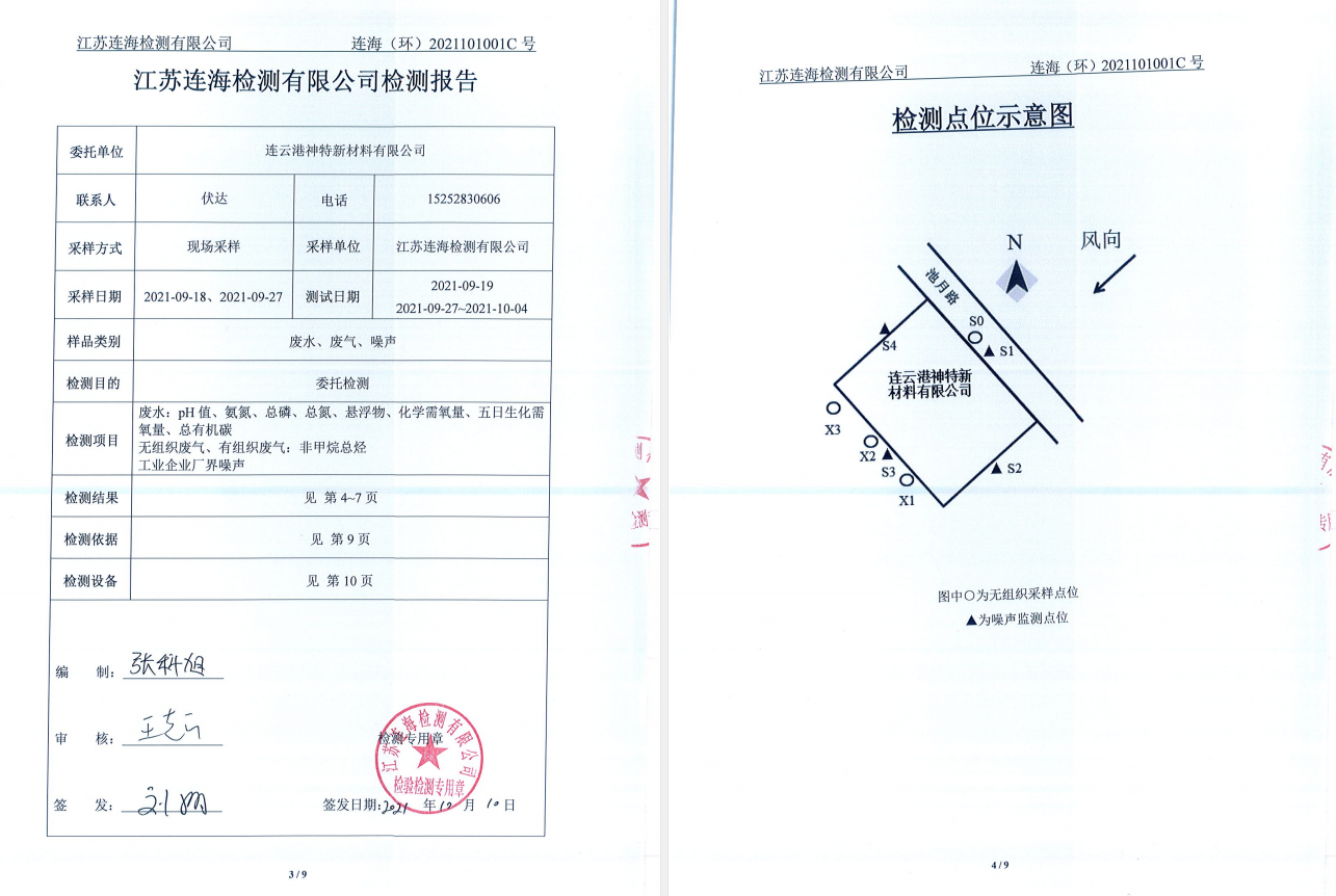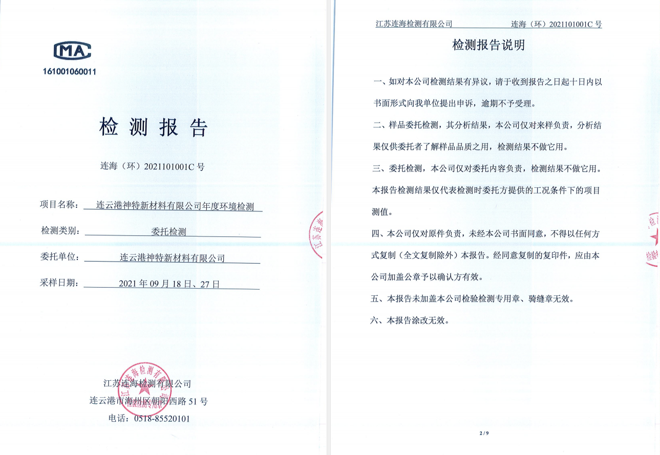 神特公司檢測報告公示