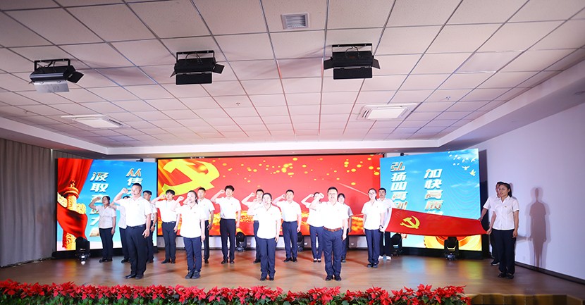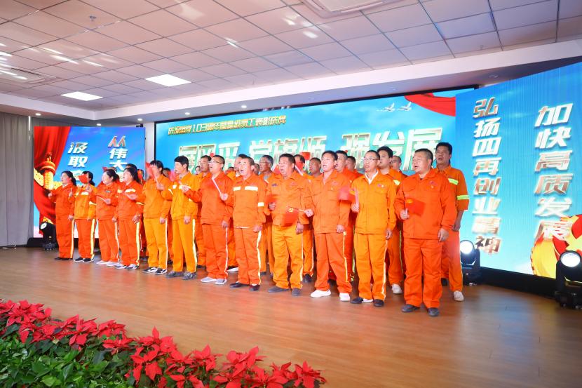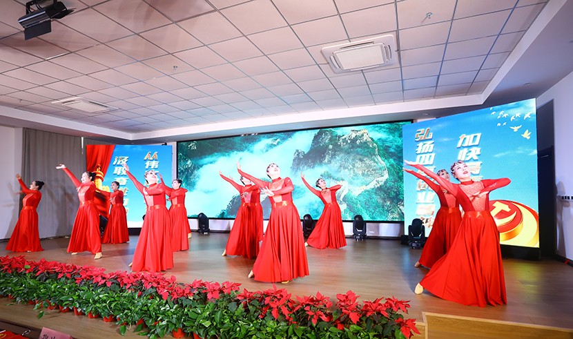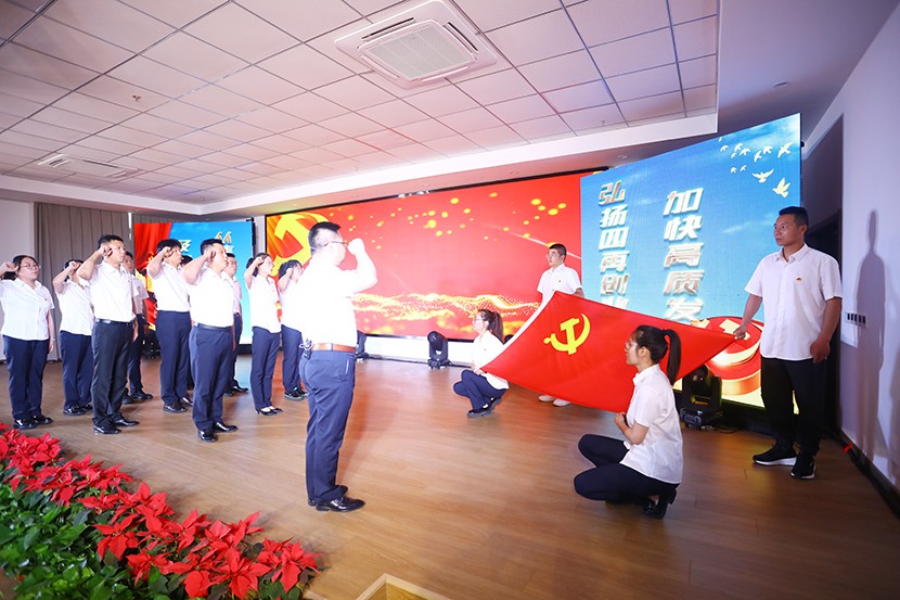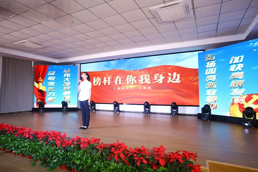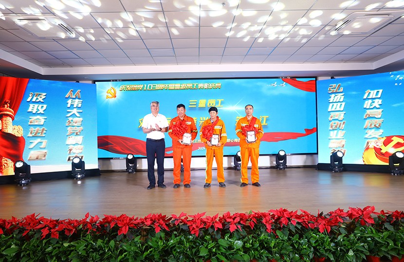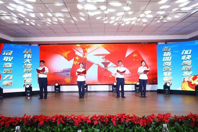演出中,陳大壹、宋思雯、閆佳俊等十名新發(fā)展的中共預(yù)備黨員和新老黨員代表進行了現(xiàn)場宣誓,并合唱《我宣誓》。對公司黨委評選出的星級員工進行表彰,并對三星級員工進行了專訪。