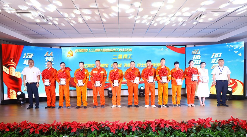 為鼓勵先進、創(chuàng)樹典型,進一步激發(fā)全公司廣大員工干事創(chuàng)業(yè)活力,不斷推動“ 敢為、敢闖、敢干、敢首創(chuàng)”在全公司上下蔚然成風(fēng),助力公司高質(zhì)量跨越式發(fā)展。6月21日下午,臺北(華茂)公司“展風(fēng)采·黨旗頌·強發(fā)展”星級員工頒獎文藝演出在環(huán)保裝備產(chǎn)業(yè)園圓滿落幕。公司領(lǐng)導(dǎo)班子,各單位、部門干部職工觀看演出,特邀請集團黨建人資、工會等同志到場觀摩指導(dǎo)。