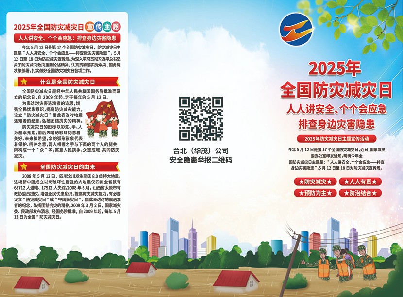 為進一步提升防災(zāi)減災(zāi)意識和應(yīng)急避險自救能力,筑牢安全防線,5月12日下午,臺北(華茂)公司防災(zāi)減災(zāi)宣傳周活動啟動儀式在環(huán)保裝備產(chǎn)業(yè)園五樓會議室舉辦。各基層單位分管安全負責人、現(xiàn)場安全員、班組長及安環(huán)部人員參加活動。