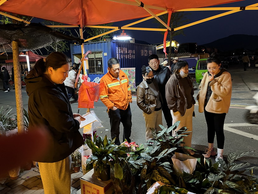 清晨5點半,益豐園林的工作人員就到達廟會現(xiàn)場。他們精心布置攤位,擺放花卉和綠植,準備迎接前來購買的顧客。隨著日頭的漸升,攤位前的熱鬧場景絲毫未減,反而愈發(fā)高漲。路過的當?shù)鼐用窦娂娡O履_步,被這一片繁花似錦、綠意盎然的景象所吸引。攤位上的工作人員們熱情洋溢,居民們手捧著剛選好的花卉,共同探討著如何更好地養(yǎng)護這些生命。