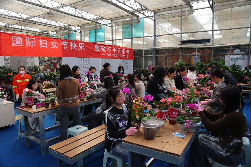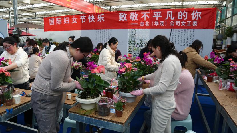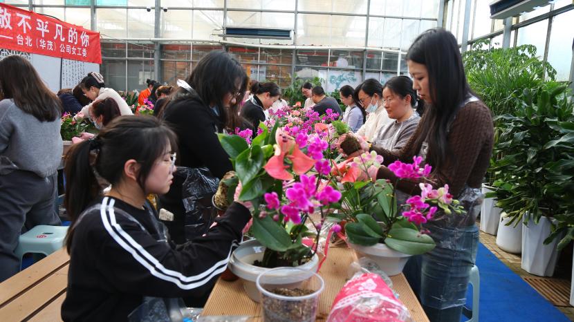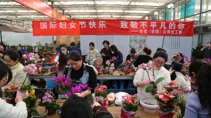 ? ? 情暖三月,巾幗芳菲相競妍。在“三八”國際婦女節(jié)來臨之際,為展現(xiàn)公司女干靚麗風采,豐富文化生活,3月6日下午,臺北(華茂)公司工會組織50余名女職工代表在市振興花卉城開展“國際婦女節(jié)快樂 致敬不平凡的你”慶婦女節(jié)插花活動,展現(xiàn)新時代女性風采。