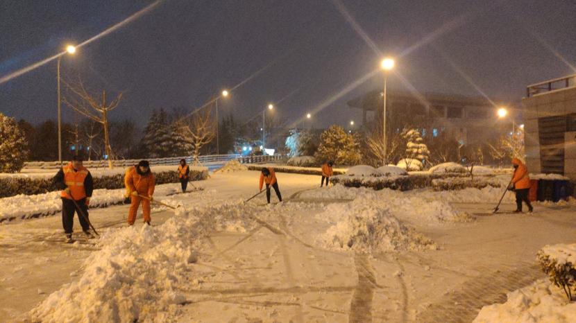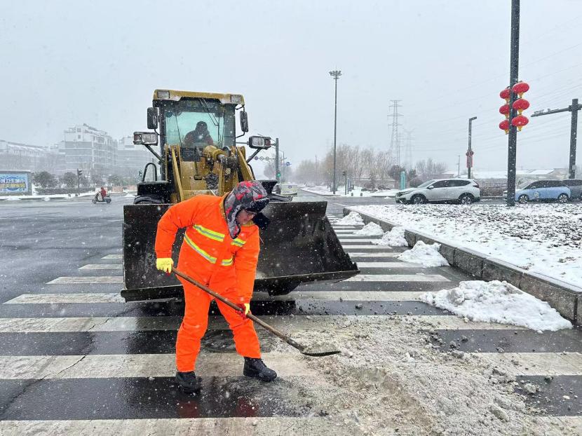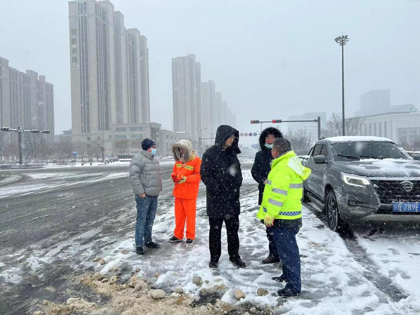 上午10時許,暴雪如約而至。裝有融雪劑的車輛全部整裝待發(fā),聞令而動,采取“人工+機(jī)械”不間斷作業(yè)模式,對轄區(qū)主次干道、橋涵、火車站東站、創(chuàng)智大廈等帶坡路段及時拋撒融雪劑,采取“滾刷+鏟車”組合方式,反復(fù)排掃路面積雪,確保主次干道、帶坡路段通暢無冰。