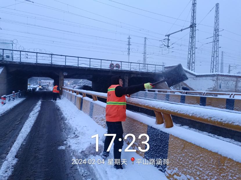 為持續(xù)保障轄區(qū)道路暢通、交通安全,臺北、華茂公司全員出動,分散在東方大道、黃海大道、花果山大道、馬山立交、新光路涵洞等各自管轄片區(qū),及時、迅速、高效、有序地清除積雪淤泥,保障市民群眾出行安全。