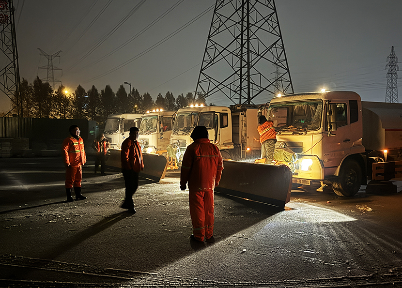 ? ? 環(huán)衛(wèi)分公司、盛達(dá)市政分公司晝夜奮戰(zhàn),清雪除冰,共出動(dòng)人員160余人次,大型機(jī)械車輛6架,將轄區(qū)交叉路口、重要地段及橋面、立交坡路等處的冰雪全部清理干凈,確保過(guò)往車輛行人的交通安全。