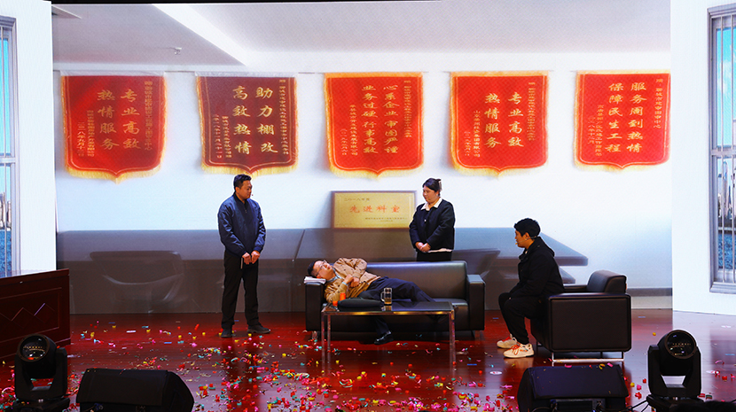 演出在舞蹈《祖國你好》中拉開序幕,隨后,一個個歡快、喜慶、祥和的文藝作品相繼上演。這其中,既有充分展現(xiàn)臺北發(fā)展力量的情景劇《我們是臺北力量》《南泥灣暢想》,也有大氣磅礴的男女對唱《不忘初心》和小合唱《眾人劃槳開大船》,有草原氣息的笛子獨奏《牧民新歌》,諷刺當下“躺平式”干部的廉潔作風(fēng)小品《坑》,展現(xiàn)公司活力的男團《舞蹈:串燒》《山丹丹花開紅艷艷》,奇特、神秘的魔術(shù)表演,一腔情懷的京劇《沙家浜-唱段軍民魚水情》……最后,在機關(guān)全體人員帶來舞蹈《相親相愛的一家人》中落幕,高潮迭起、精彩不斷,得到廣泛好評。