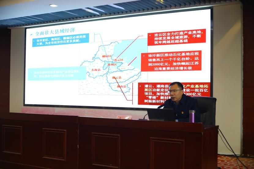 盧山教授緊扣”以“四新”推動連云港高質(zhì)量發(fā)展新實踐主題,從深刻認識“四個新”的重大意義、準確把握“四個新”的豐富內(nèi)涵、推進“四個新”的連云港新實踐3個方面,對習近平總書記考察江蘇重要講話重要指示精神做了深入講解,授課內(nèi)容視野開闊、重點突出、分析透徹,既有理論高度,又有實踐深度,具有很強的思想性、理論性和指導性,為與會學員帶來了一場高質(zhì)量的理論學習。