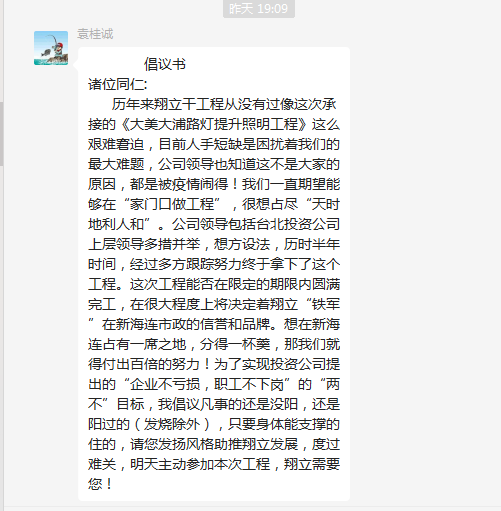 ? ? ? ??精兵強將,火速支援。疫情來勢兇猛,很多人都難逃魔爪,造成翔立用人短缺,面臨這種難題,翔立鐵軍經受住了考驗。朱文江同志陽轉陰后,火速到崗,第一時間帶領大家繼續(xù)奮戰(zhàn);老黃牛喬以成同志已經一個多星期每天吃住都在公司,就是為了自己能夠健健康康接著干;袁桂誠同志負責安全管理,但當看到人員短缺,緊急上崗,一邊督促著大家安全生產,一邊手頭上的活也沒停下;丁祥生同志輕燒不下火線,每天吃點藥準時到達現(xiàn)場......正是有了這些敬業(yè)的人,翔立才能一次次在困境中走出去,在投資公司黨委的堅強領導下,翔立人將繼續(xù)發(fā)揚鐵軍精神,昂揚“四再”創(chuàng)業(yè)精神,淬煉“四拼”工作作風,攻堅克難,為臺北的發(fā)展拼盡每一份力!