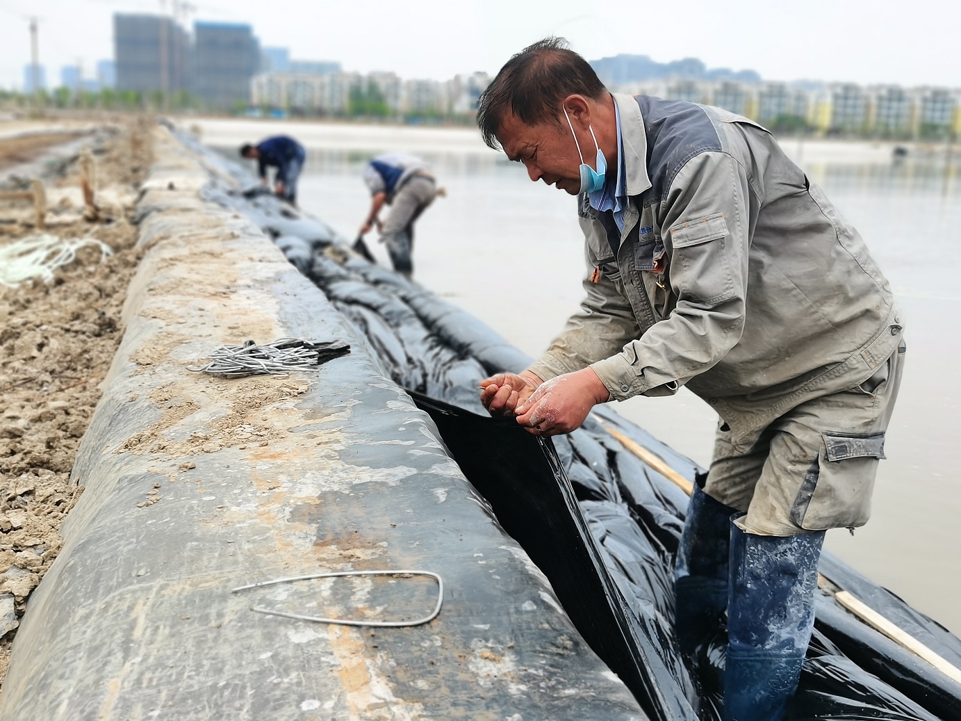 礦鹽生產(chǎn)班組提前謀劃原鹽集運前的準備工作。2022年秋扒鹽已經(jīng)順利落下帷幕,工人們利用收鹽后的空隙對鹽池板進行修整、整理收放系統(tǒng)以及將扒鹽機械進行保養(yǎng)入庫等等。同時,修整運鹽主干道,地基較軟處以鋼板鋪墊,確保運鹽車輛安全通過。排查廩基周圍高低壓線路,在作業(yè)的同時堅守安全生產(chǎn)底線。等待天氣轉(zhuǎn)好,將立即進行原鹽集運。
