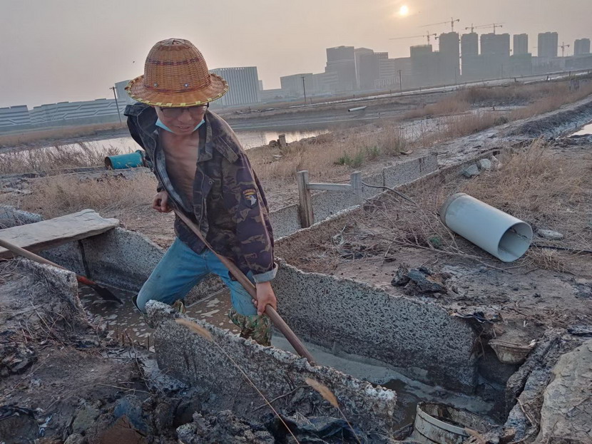 在海州灣大浦班組367畝的礦鹽生產(chǎn)灘地上,遠(yuǎn)遠(yuǎn)的看去,只有三個(gè)人在灘地上忙碌,分別是班長孫和華和兩名鹽工。在十月份的時(shí)候,原大浦班組班長夏軍帶領(lǐng)第一批鹽工前往海福特,孫和華因?yàn)樯眢w原因選擇了留下,此時(shí),生產(chǎn)班組人數(shù)減半,只剩下三人。新產(chǎn)業(yè)要開發(fā),礦鹽復(fù)產(chǎn)也要攻堅(jiān),當(dāng)公司征求部分職工意見,誰愿意來做大浦班組的班長,維持礦鹽正常生產(chǎn)。大家心里都明白,這不是一份榮譽(yù),而是一份責(zé)任,是千斤重?fù)?dān),一片生產(chǎn)灘地只有三人,這是一個(gè)燙手山芋的活。這時(shí),孫和華站了出來,他說:“我是一名老黨員了,黨員就是要平時(shí)看出來、困難站出來、危急豁出來,為其他同志樹立黨員先鋒模范作用,這份擔(dān)子,理應(yīng)我來挑!”
