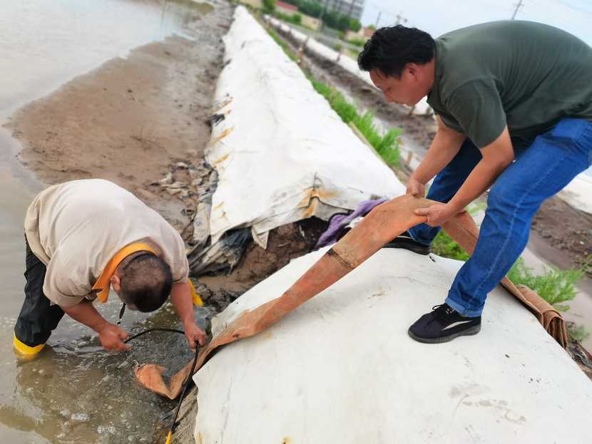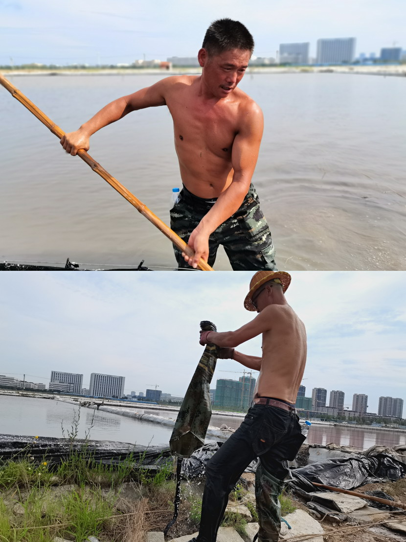 先鋒泵站,程輝師傅撩起工作服擦了擦臉上的汗水,繼續(xù)將潛水泵安置到已廢棄的灘地里,把灘地里的雨水抽干,將廢棄的灘地利用起來(lái)晾曬低濃度的鈣液,解決銷(xiāo)售旺季成品鈣液供不應(yīng)求難題。