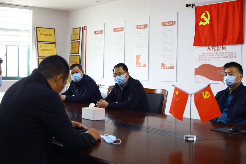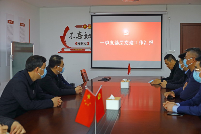 隨后,戴書記一行在會議室聽取投資公司一季度黨建工作匯報,對投資公司工作給予肯定,投資公司領(lǐng)導(dǎo)班子面對突如其來的疫情時,做到了應(yīng)變有力、保障有力、組織有力。在聽取近期生產(chǎn)經(jīng)營、黨的建設(shè)等工作匯報后,戴書記提出四點指導(dǎo)意見:一是不折不扣落實上級指示精神。二是毫不動搖抓好疫情防控和復(fù)工復(fù)產(chǎn)。三是一著不讓推進(jìn)黨建與工會工作。四是深入細(xì)致安全穩(wěn)定環(huán)保工作。