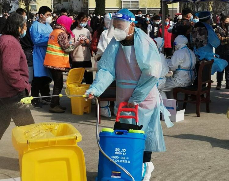霍正鋼,志愿者隊(duì)伍的一員,也是這支志愿服務(wù)隊(duì)伍中的中堅(jiān)力量。他,心中有大愛,在海州灣黨支部3月7日發(fā)出“馳援社區(qū),共同抗疫”動(dòng)員令后,他第一個(gè)站出來:“疫情就是命令,防控就是責(zé)任。身為黨員,我理應(yīng)模范帶頭,支持新冠肺炎疫情防控工作?!彼粌H是這樣說的,更是這樣做的,在昌圩社區(qū)每一次的核酸檢測(cè)中,他專挑“急、難、險(xiǎn)、重”的活。比如消殺工作,這是一個(gè)體力活,需要背著足足有20公斤重的消毒液,來回不停的走動(dòng),不斷的添加消毒液。有幾次,核酸檢測(cè)從早上8點(diǎn)一直持續(xù)到晚上8點(diǎn),足足12個(gè)小時(shí),而消殺工作的時(shí)長(zhǎng)都達(dá)到14個(gè)小時(shí),不僅是檢測(cè)過程中,開始前和結(jié)束后的一小時(shí)都要消殺到位。14個(gè)小時(shí)下來,霍正鋼同志穿著密不透風(fēng)的防護(hù)服,里面的衣服濕了又干,干了又濕······。當(dāng)大家看到他口唇干裂的都掉了皮,問他:“你是沒有喝水嗎?”“不能喝水,忍著吧,喝水就得上側(cè)所,耽誤時(shí)間,這波病毒隱匿性強(qiáng),傳播速度快,不能有一絲懈怠?!彼┖竦恼f著。