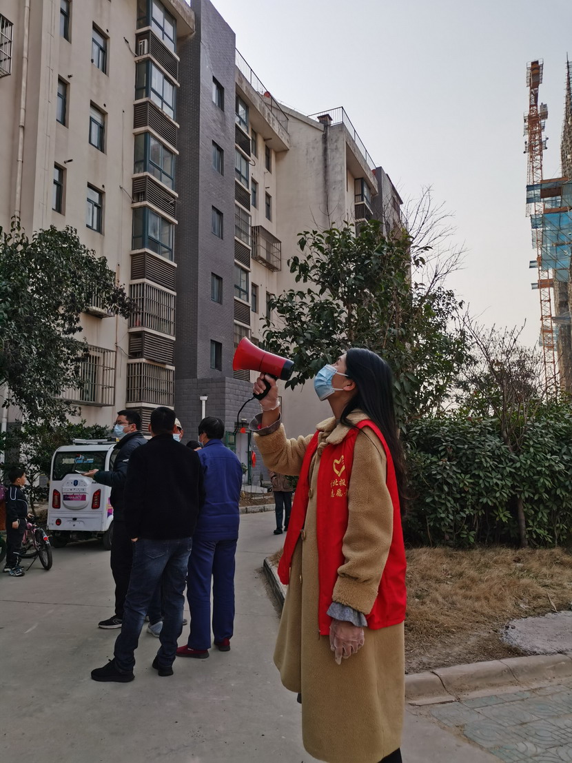 ▲昌圩社區(qū)臨時(shí)黨支部副書記蘇玲宣傳核酸檢測(cè)政策