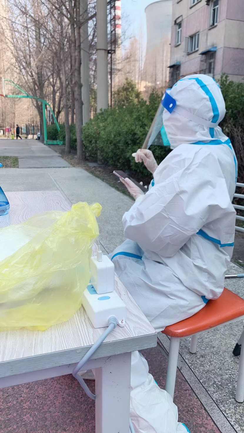 3月8日,臨時(shí)黨支部成立,黨員志愿者們隨即奔赴社區(qū)核酸檢測(cè)現(xiàn)場(chǎng)。當(dāng)天,志愿者們穿上防護(hù)服?!澳愫茫?qǐng)戴好口罩,出示健康碼?!薄澳愫茫@邊人比較少,請(qǐng)往這邊走,保持一米距離?!本S持現(xiàn)場(chǎng)秩序、檢查健康碼、登記核酸個(gè)人信息……志愿者們堅(jiān)守在各自責(zé)任區(qū),細(xì)心、耐心回答居民們的各類問題,忙得連喝水的時(shí)間都沒有。細(xì)致周到的服務(wù)、無私的奉獻(xiàn)精神,得到了社區(qū)居民們的一致認(rèn)可和贊揚(yáng)。