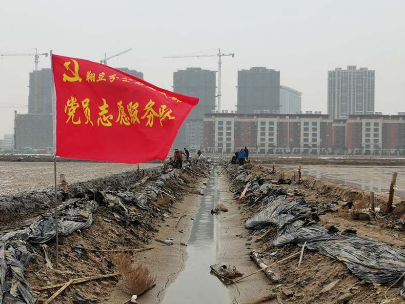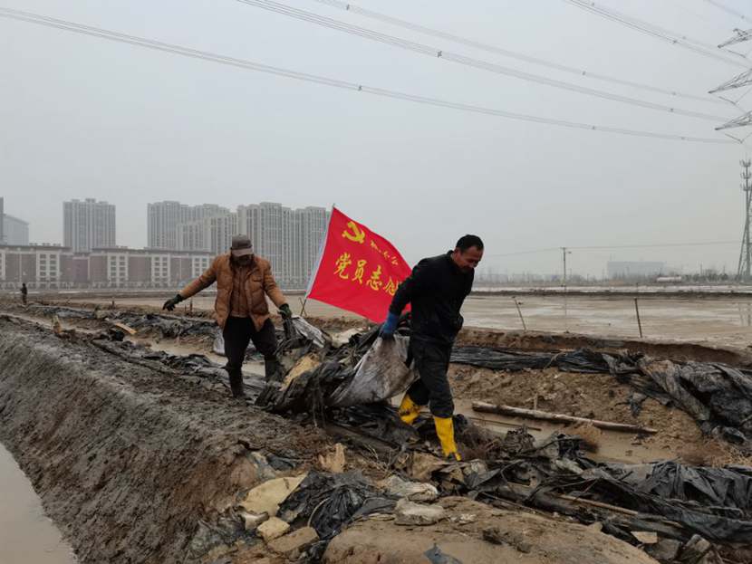 勞動現(xiàn)場,鮮紅的“黨員突擊隊”旗幟迎風(fēng)飄揚,凜冽的寒風(fēng)夾雜著細(xì)雨,絲毫不減大家的勞動熱情,個個汗流浹背、滿身泥漿,不怕臟不怕累,經(jīng)過3個小時的突擊勞動,共清理1200米、16車池埝垃圾。