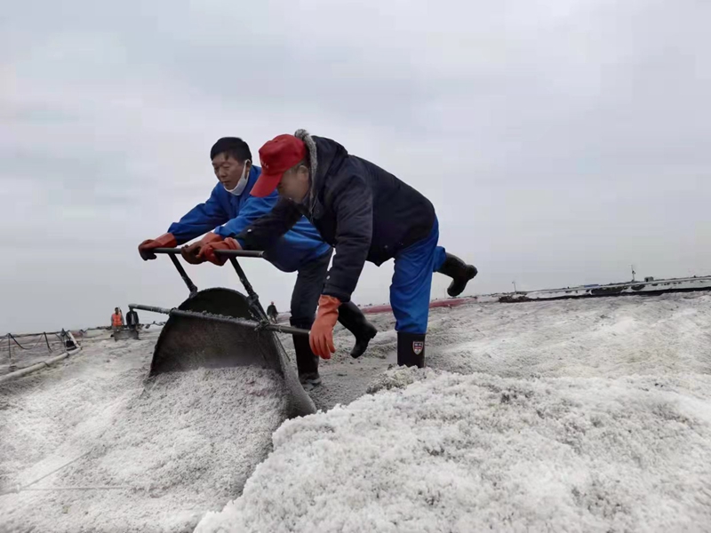 一線職工克服零下數(shù)度的嚴(yán)峻氣候,24小時(shí)馬不停蹄的搶扒鹽。原鹽搶收進(jìn)入到了大決戰(zhàn)時(shí)刻。