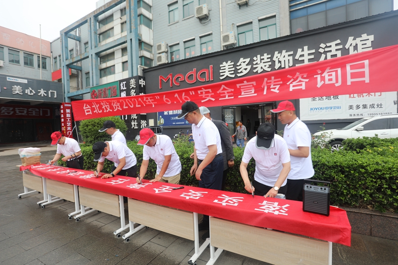 今年6月是第20個(gè)全國(guó)安全宣傳月。6月16日,投資公司領(lǐng)導(dǎo)班子全員參加,圍繞“落實(shí)安全責(zé)任,推動(dòng)安全發(fā)展”主題,組織20余名安全管理人員在光伸建材廣場(chǎng)開(kāi)展“6.16安全生產(chǎn)宣傳咨詢?nèi)铡被顒?dòng)。
