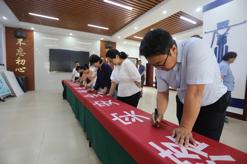6月11日上午11時,在臺北投資公司廉政文化教育室,公司機關(guān)全體員工一起舉起右手,一字一句的宣誓,字字鏗鏘有力,擲地有聲。用錚錚誓言銘記安全責(zé)任,牢筑安全生產(chǎn)防線,為全力抓好公司的安全工作保駕護航,向黨的一百年華誕獻禮。