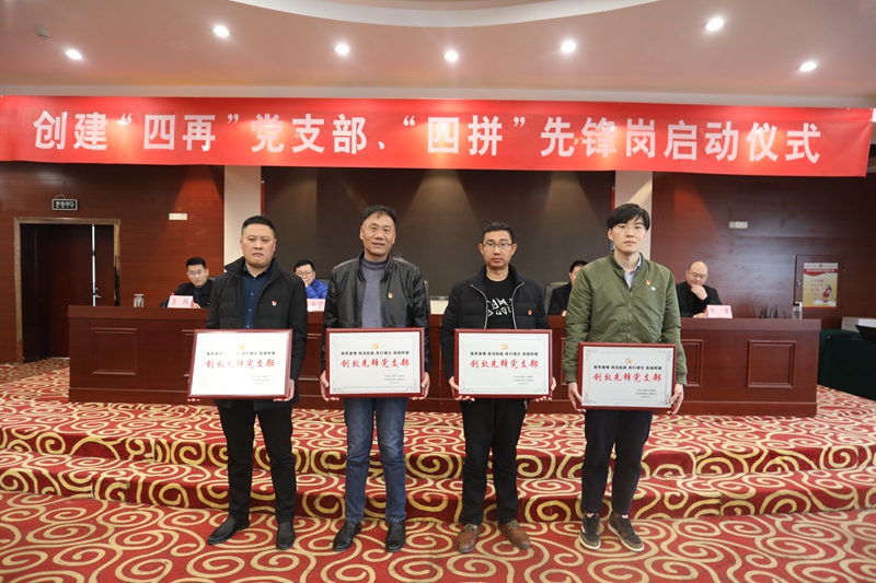 啟動儀式中還進行了“四再”黨支部、“四拼”先鋒崗授牌,支部書記、黨員代表進行了表態(tài)發(fā)言。?