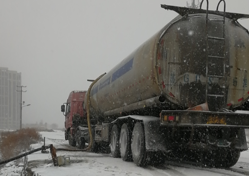 從不因天氣影響而中斷的鈣液銷售工作,風雪中仍在如火如荼的進行著。負責鈣液開票發(fā)放人員仔細的檢查并認真注視液位流量計,嚴謹記錄,嚴格遵守“一車一票制度”,滿載鈣液的槽罐車在風雪中緩緩前行,乘載著“瑞雪兆豐年”的希望!