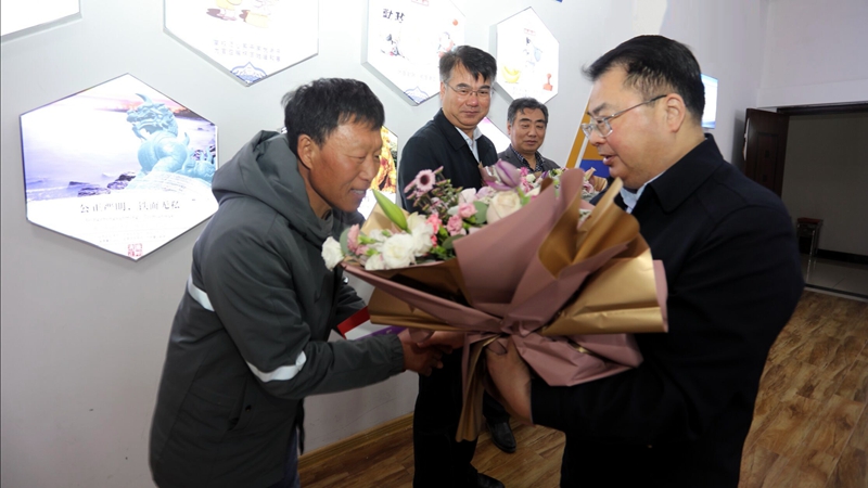戴鴻鳴副書(shū)記還為勞模們送上了鮮花和生日蛋糕卡。