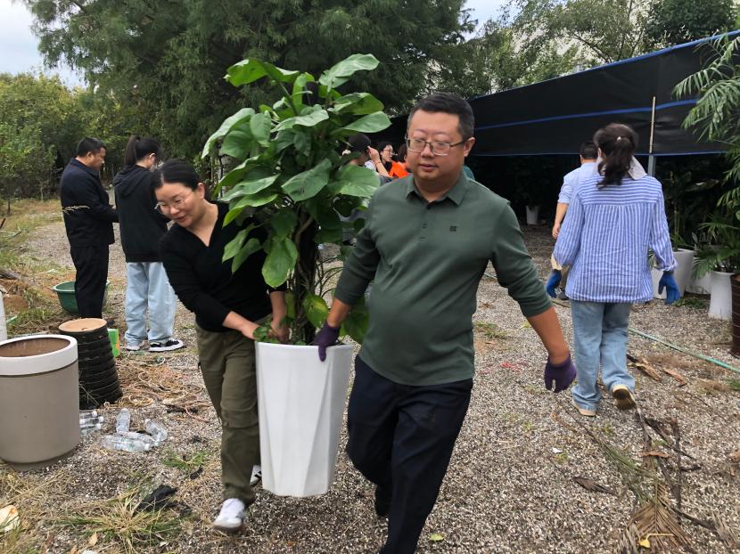 近日氣溫持續(xù)降低,為進一步發(fā)揮機關(guān)人員的團隊合作精神與責(zé)任擔(dān)當(dāng)意識,切實保障不耐寒綠植盆栽順利越冬。機關(guān)黨支部聯(lián)合益豐分公司黨支部在盆景園內(nèi)開展“突擊勞動顯擔(dān)當(dāng) 共為綠植搬新家”主題黨日活動。
