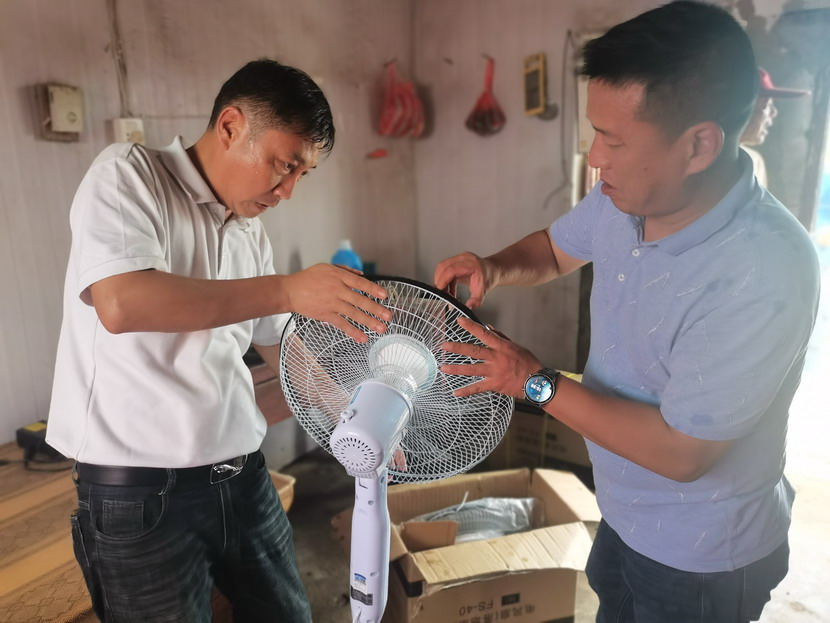 近期,海州灣工會協(xié)同公司一起深入班組開展“安全生產(chǎn)百日攻堅大行動”,認真排查生產(chǎn)作業(yè)場所及職工值班室安全隱患。在排查過程中,發(fā)現(xiàn)值班室的吊扇十分陳舊,運轉時有晃動的現(xiàn)象,存在風葉脫落的危險,且風力微弱,達不到良好的降溫效果。工會現(xiàn)場拿出解決方案,決定采購一批落地扇送入班組,為職工送去一絲清涼。