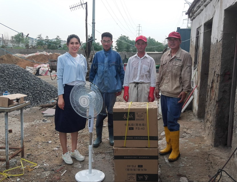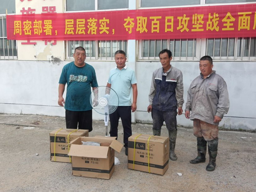 15臺風扇陸續(xù)送至“先鋒、昌圩、大浦”三個礦鹽班組,公司領導一邊親手為職工進行安裝,一邊與他們親切交談,詳細了解職工需求,充分肯定他們不畏艱辛、吃苦耐勞的奉獻精神,叮囑他們做好防暑措施,保障身心健康,同時保障生產(chǎn)作業(yè)安全平穩(wěn)。