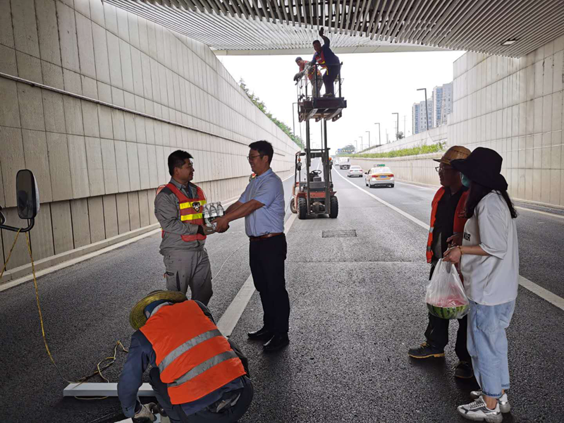 5月29日,隨著季節(jié)變化,戶外氣溫不斷攀升,給奮斗在露天施工現(xiàn)場(chǎng)的翔立“鐵軍”們帶來諸多不便,太陽暴曬、酷熱難耐、體能消耗很大。為了切實(shí)關(guān)愛職工,傳遞公司對(duì)員工無微不至的體恤關(guān)懷,翔立分公司工會(huì)第一時(shí)間組織送清涼到一線活動(dòng),購買了防暑降溫飲品、礦泉水、西瓜等,驅(qū)車來到花果山大道立交橋維修工程現(xiàn)場(chǎng),將飲品及時(shí)發(fā)放到每一個(gè)施工人員手中。通過送清涼活動(dòng)的開展表達(dá)了分公司關(guān)愛職工的情懷,也給炎熱的天氣帶來了一絲愜意,一縷清涼。