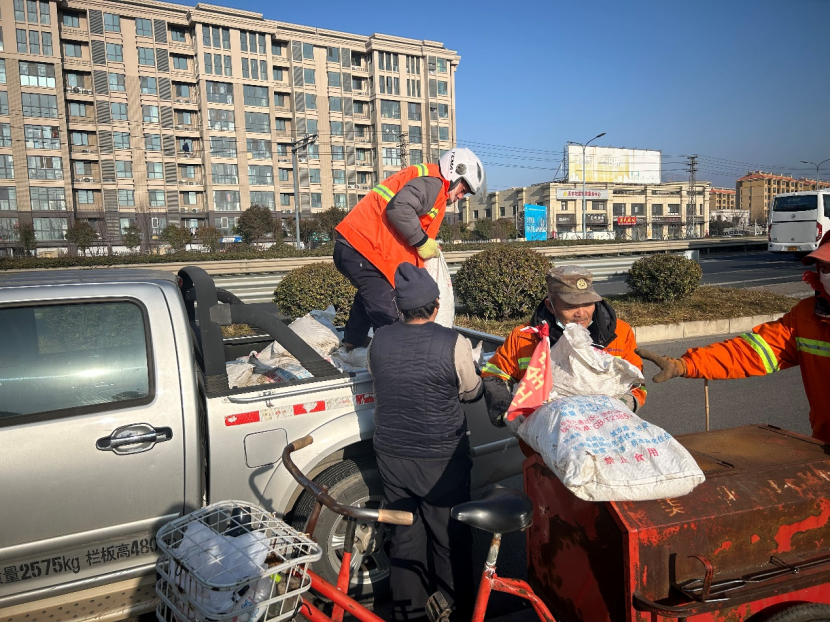 本次任務(wù)共出動環(huán)衛(wèi)分公司鏟車一輛、自卸車一輛、保潔員工12名,每個班放置融雪劑40袋,歷時兩個下午時間將九個班共計360余袋融雪劑全部發(fā)放到位。