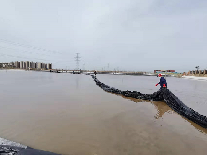 不負(fù)春光早起步,大干快上正當(dāng)時(shí)。隨著我市疫情剛一解封,海州灣公司礦鹽復(fù)產(chǎn)工程立即開啟加速“奔跑”模式,經(jīng)過前期充分的準(zhǔn)備和精心部署,在3月31日疫情解封的第一天,安排貨車將第一批塑布運(yùn)輸?shù)轿?。次日早?/span>7點(diǎn),海州灣公司和翔立分公司全體員工在先鋒班組集合,開啟第一輪塑布安裝以及鹵水灌池工作,搶抓“小滿”前后十八天的池內(nèi)長(zhǎng)鹽黃金期。
