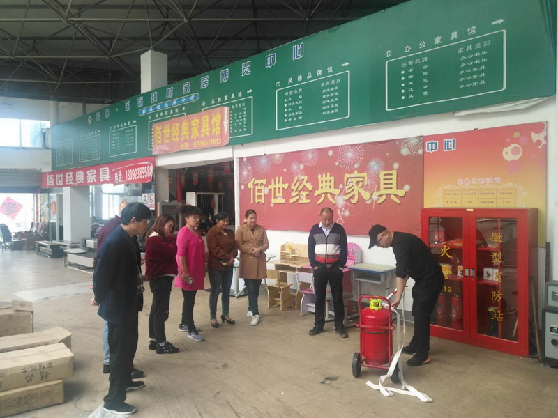近期,臨達(dá)公司為更好的做好光伸家具市場消防工作,特別購置了7具20公斤推車式干粉滅火器。面對新事物,就有新方法、新要求,10月12日上午,臨達(dá)公司組織相關(guān)方人員,在現(xiàn)場進(jìn)行了專項(xiàng)培訓(xùn),對其使用范圍、使用方法和注意事項(xiàng)作出詳細(xì)的講解。