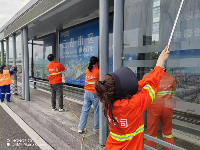 ? ? ? ?集中勞動“有力彰顯”。學(xué)習(xí)活動結(jié)束后,保潔、機關(guān)黨支部20多名黨員匯集新區(qū)核心區(qū)域徐圩大道,南京路等路段,開展黨員義務(wù)勞動?;顒蝇F(xiàn)場,大家分工明確,相互配合,無懼高溫天氣,上下?lián)]動雙臂,沖洗站臺玻璃和清理廣告標(biāo)語,經(jīng)過兩個多小時持續(xù)奮戰(zhàn),徒手清洗站臺20多個,座椅40多個。(楊波)