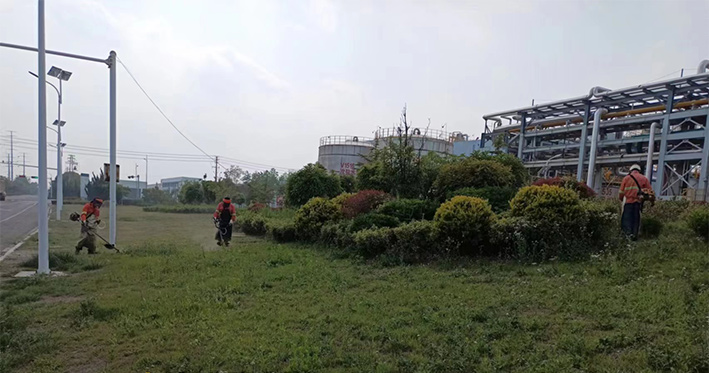 板橋工業(yè)園區(qū)祥和路、云港路、瑞和路等路段,隨處都可見(jiàn)到綠化工人忙碌的身影,他們不畏辛苦,搶時(shí)間、抓進(jìn)度,對(duì)綠籬、綠化苗木進(jìn)行修剪造型。園區(qū)路邊,機(jī)器轟鳴,除草工作有條不紊。綠化工人們頭戴防護(hù)帽,架著割草機(jī),動(dòng)作嫻熟,割草效率極高。三人一排、兩人一對(duì),齊頭并進(jìn),戰(zhàn)線推進(jìn)過(guò)的地方?jīng)芪挤置鳎粝乱黄R的坡面,賞析悅目。經(jīng)過(guò)多日持續(xù)奮戰(zhàn),已經(jīng)完成綠地雜草清理15萬(wàn)平方米,綠籬修剪3萬(wàn)平方米任務(wù)。為高標(biāo)準(zhǔn)完成二季度綠化管養(yǎng)目標(biāo)奠定基礎(chǔ)。(劉永)