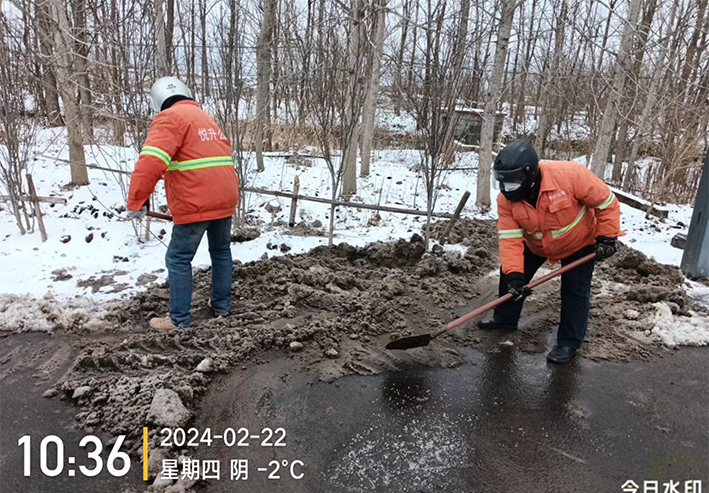 寒雪無情,人間有情,該公司黨員干部齊上陣,60余人奔赴道路一線開展清冰掃雪工作。按照“先主后次、先內(nèi)后外、先陡后平、先重點后一般”的順序,對轄區(qū)內(nèi)主干道、幸福家園周邊等地的冰凍積雪進行集中清理。在幸福家園小區(qū)清掃現(xiàn)場,大家不懼嚴寒、干勁十足,手里拿著鐵鍬、掃帚等清掃工具,相互配合,對路面上的積雪、積冰進行清掃鏟除,經(jīng)過大家持續(xù)奮戰(zhàn),冰雪覆蓋的路面被打掃的干干凈凈,為小區(qū)居民的出行安全帶來了保障。