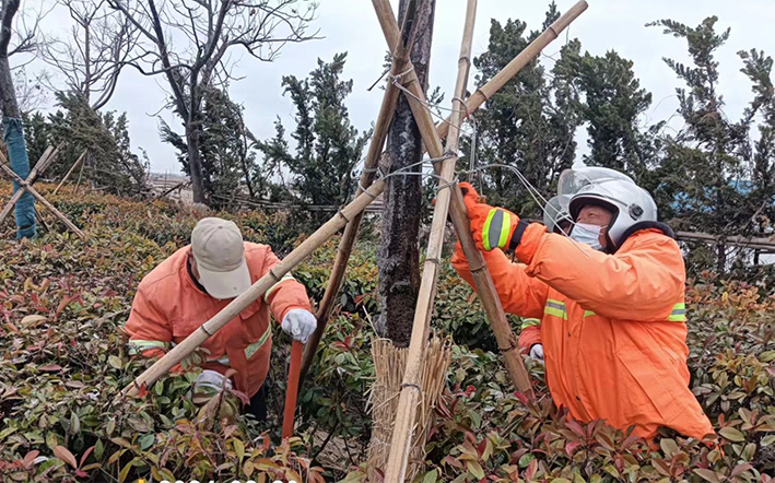 降雪發(fā)生以來,在清理路面積雪保障群眾安全通行的基礎(chǔ)上,該公司迅速組織班組開展園林苗木積雪冰凍清除工作,重點對黑松、雪松、龍柏、球類等苗木積雪進行清理,及時為樹木“減壓”,避免積雪壓彎或壓斷樹枝,及時消除安全隱患,保護轄區(qū)內(nèi)綠化成果。截至目前,共計清除各類園林苗木積雪8600余株。(陳小東)