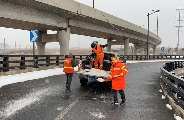 掃雪除冰工作刻不容緩。按照悅升公司掃雪除冰工作任務(wù)分配,環(huán)衛(wèi)分公司負(fù)責(zé)228徐新路到環(huán)保大道路段掃雪除冰任務(wù)。該區(qū)域內(nèi)因含有張圩互通大橋,光橋梁匝道、輔道就有8條,上下路段非常陡滑,給掃雪除冰工作帶來(lái)極大挑戰(zhàn)。但該公司人員堅(jiān)決認(rèn)領(lǐng)任務(wù),沒有任何退縮。他們采取車輛緩慢行駛方式,橋梁陡峭路段就使用人工用鐵锨一锨一锨端灑的方式進(jìn)行。雖然寒風(fēng)雪天中,不停的作業(yè)使胳膊潑灑的極其酸累,但大家不辭辛苦,沒有一絲怨言,全體人員全部值守在崗,奮戰(zhàn)在掃雪除兵工作第一線,僅2月4日一天,就潑灑融雪劑7車近30噸,為打贏掃雪除冰功堅(jiān)戰(zhàn)打好堅(jiān)實(shí)基礎(chǔ)。(晁華)