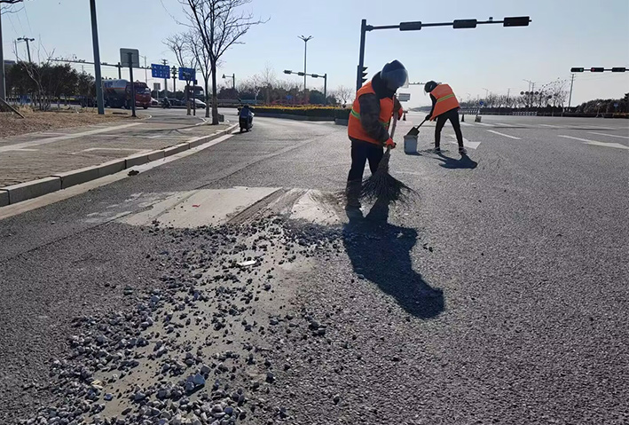 燈塔路路口,巡查人員發(fā)現(xiàn)大面積車(chē)輛拋灑物,生產(chǎn)骨干張學(xué)軍、徐習(xí)東、陸永柱接到公司應(yīng)急處理電話(huà)第一時(shí)間趕赴現(xiàn)場(chǎng),盡管天氣寒冷,但是大家干的熱火朝天,共清理泥塊30多處,長(zhǎng)達(dá)800多米長(zhǎng);轉(zhuǎn)運(yùn)石子、石塊50多車(chē),他們?cè)俅斡眯袆?dòng)彰顯黨員示范風(fēng)采。