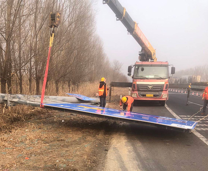 1月12上午,市政道路養(yǎng)護(hù)人員在巡查中發(fā)現(xiàn),S242交叉路口北側(cè)交通標(biāo)示牌存在重大交通安全風(fēng)險(xiǎn),經(jīng)查看,發(fā)現(xiàn)標(biāo)志牌基座螺栓已斷三根。該公司立即組織維修人員到達(dá)拆除現(xiàn)場(chǎng),工作人員在標(biāo)志牌四周擺放警示標(biāo)志,設(shè)置安全作業(yè)區(qū),一名隊(duì)員則擔(dān)當(dāng)起臨時(shí)交警,引導(dǎo)過往車輛有序通行。因標(biāo)志牌較大,先期利用機(jī)械先將其固定住,隨后工作人員對(duì)基座和標(biāo)志牌進(jìn)行拆除分解,整個(gè)過程分工明確,準(zhǔn)備充分,經(jīng)過近2個(gè)小時(shí)的緊張施工,迅速完成拆除工作。10時(shí)許,工作人員并對(duì)附近另一塊大型交通標(biāo)志牌進(jìn)行扶正并進(jìn)行加固。此次拆除行動(dòng)共出動(dòng)隨車吊機(jī)一臺(tái)、登高車一臺(tái)、工作人員8人次,安全拆除標(biāo)志牌一塊,扶正、加固標(biāo)志牌一塊,確保了交通暢通和行車安全。