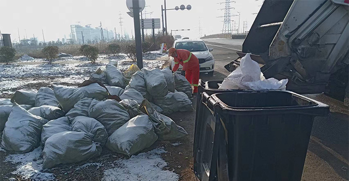 早上六點,在徐圩新區(qū)垃圾轉(zhuǎn)運(yùn)站,環(huán)衛(wèi)分公司垃圾清運(yùn)班組班長羅海軍正在等著垃圾收運(yùn)中轉(zhuǎn)車的到來。他說:“知道昨晚下雪了,今天我們提前一小時就上崗了,以防因為道路濕滑影響收運(yùn)效率?!?據(jù)統(tǒng)計,在持續(xù)低溫時段,他們每天清運(yùn)生活垃圾高達(dá)15噸,清理轉(zhuǎn)運(yùn)各類果皮箱垃圾達(dá)200余個及19家企業(yè)(單位)的垃圾桶,并同步負(fù)責(zé)裝運(yùn)由道路保潔工人撿拾定點擺放在路邊的近500包袋裝垃圾。(何春林)