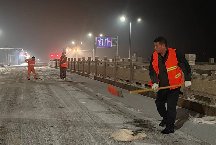 “下雪就是命令!”昨晚幾乎與降雪同步,板橋園區(qū)滿城“橘黃閃耀”。風(fēng)雪中,瑞南人不畏嚴(yán)寒,堅守崗位,后勤保障加班加點,在連云園區(qū)燒香河大橋上,各班組人員協(xié)同作戰(zhàn),有指揮、有鏟雪、有拋灑融雪劑,他們揮舞鐵鍬、揮動掃把,全速進(jìn)行掃雪除冰工作。截止19日凌晨兩點,燒香河大橋、程圩高架橋,上下引坡等交通要道區(qū)域積雪已基本清除完畢,其他路段正在有序清理。 (金知青)